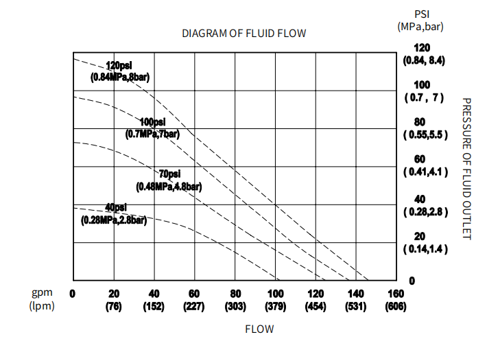 | Fluid Inlet/Outlet Size: 3” Flange Air Inlet Size: 1/2” BSP Max. Particle Size: 6.4mm Max. Working Pressure: 8.4bar Air Comsumption: 1.5-2m³/min |